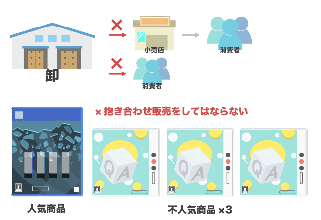 人気商品(抱き合わせ商品)を購入などするのに対して、不人気商品(被抱き合わせ商品)の購入等を強制すること。